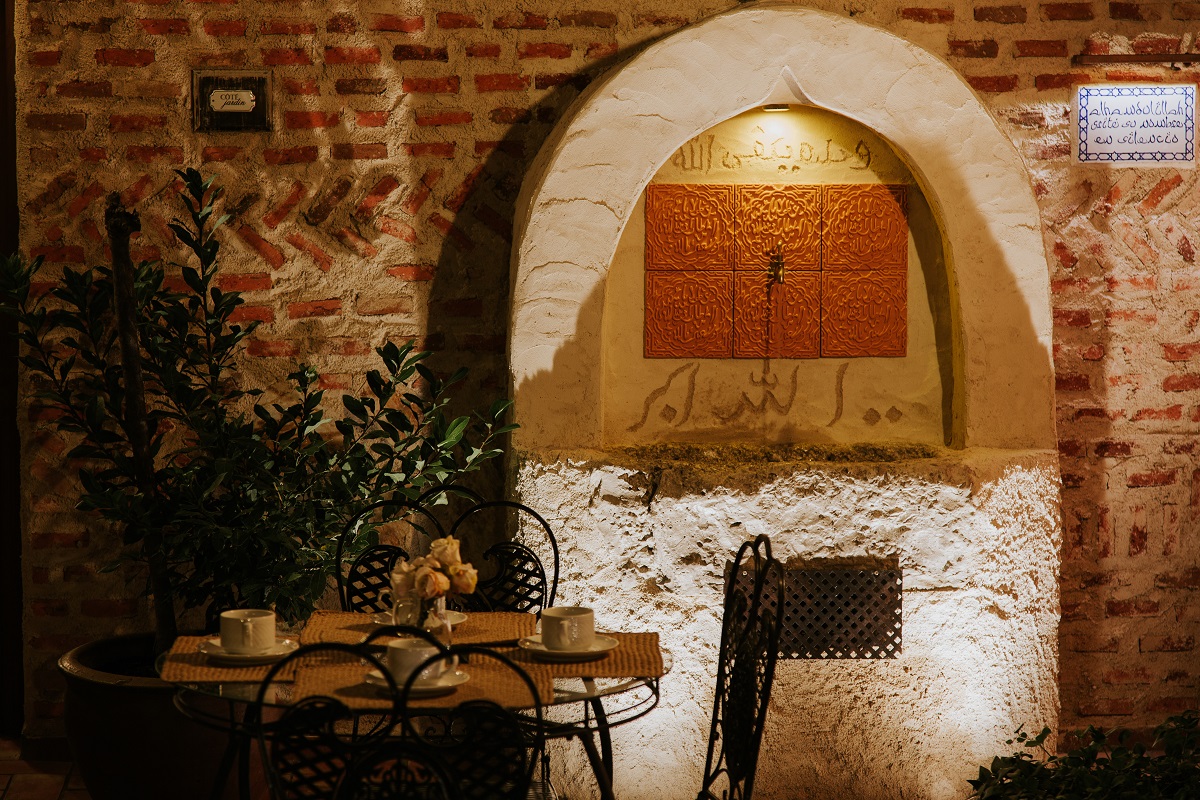A lo largo de los años he ido reformando esta casa, que fue de mi abuela. A la luz de la Tradición, bajo las inspiración coránica de construir el Paraíso en la Tierra y, como decía Teresa de Ávila, el Paraíso dentro de mí misma, he ido construyendo fuentes nazaríes, inspiradas en las fuentes de azulejos andalusíes de la medina de Fez y de las kasbahs del desierto de Marrakech, con un frontal de yeserías inspiradas en la Alhambra, realizadas por maestros artesanos de Sevilla. Lo último ha sido plantar dos olivos en la parte intermedia del patio grande o jardín. y una fuente a ras de suelo como las de la Alhambra, realizada por un maestro artesano de Almería.