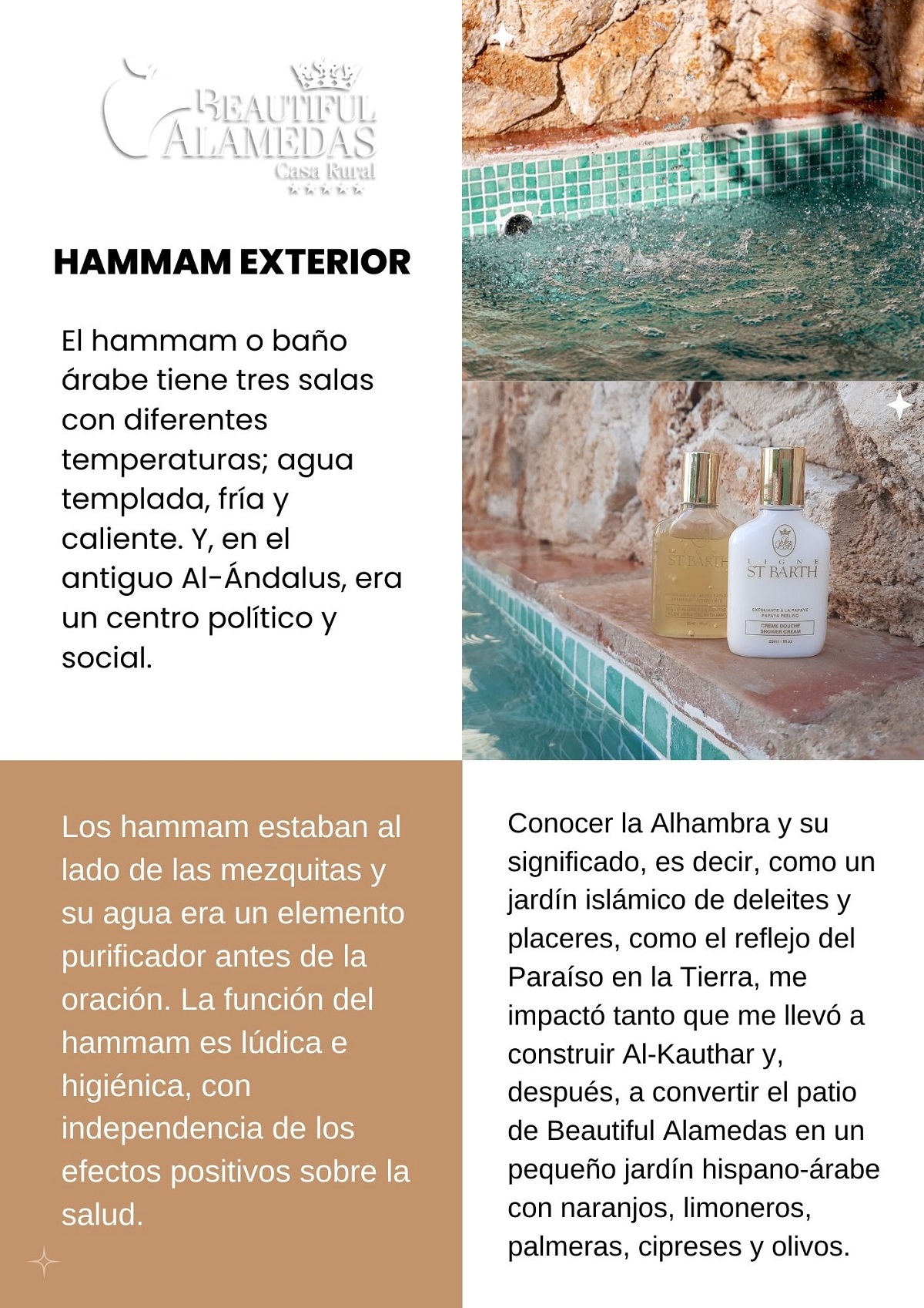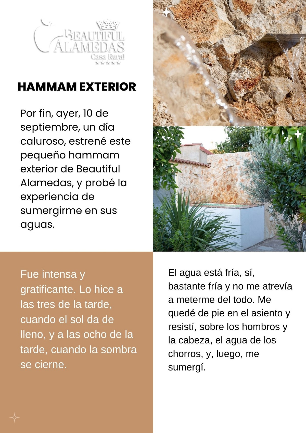 Bastantes años después, y tras no pocas vicisitudes y esfuerzo, estreno, en Beautiful Alamedas, mi pequeño hammam exterior, quizá "hammam Beautiful Alamedas".