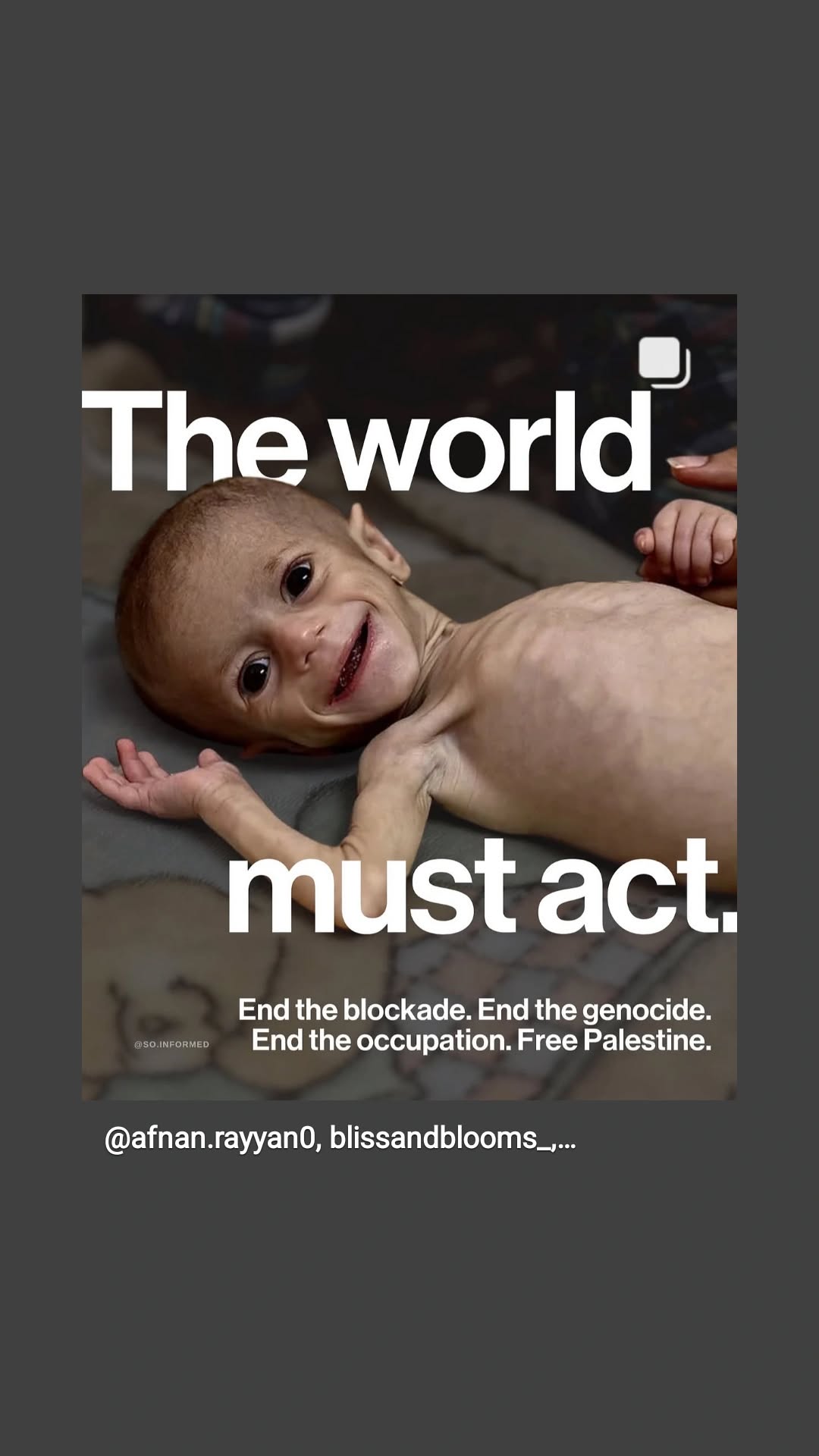 Hace unas semanas vi a este angelito Palestino en Instagram. Es la bebé de cinco meses a la que el terrorismo sionista ha intentado asesinar privándole de alimento.