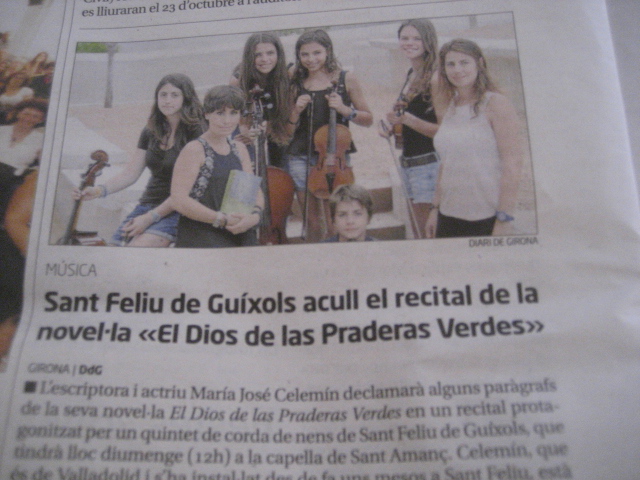 El diumenge, 28 de setembre, a les 12 del migdia, a l’ermita de Sant Amanç de Sant Feliu, es portarà a terme un recital que enllaçarà la novel·la “El Dios de las Praderas Verdes”, obra de María José Celemín, que procedent de Valladolid ha recalat fa uns mesos a Sant Feliu.