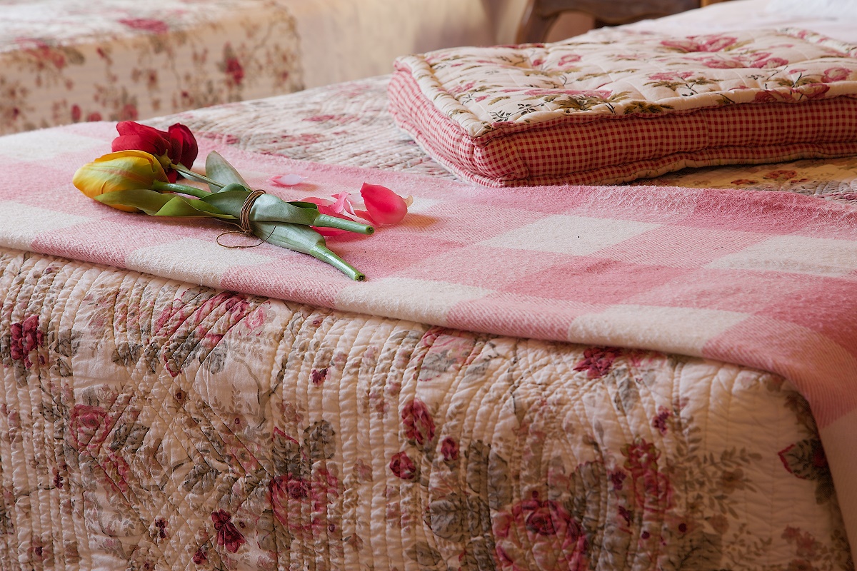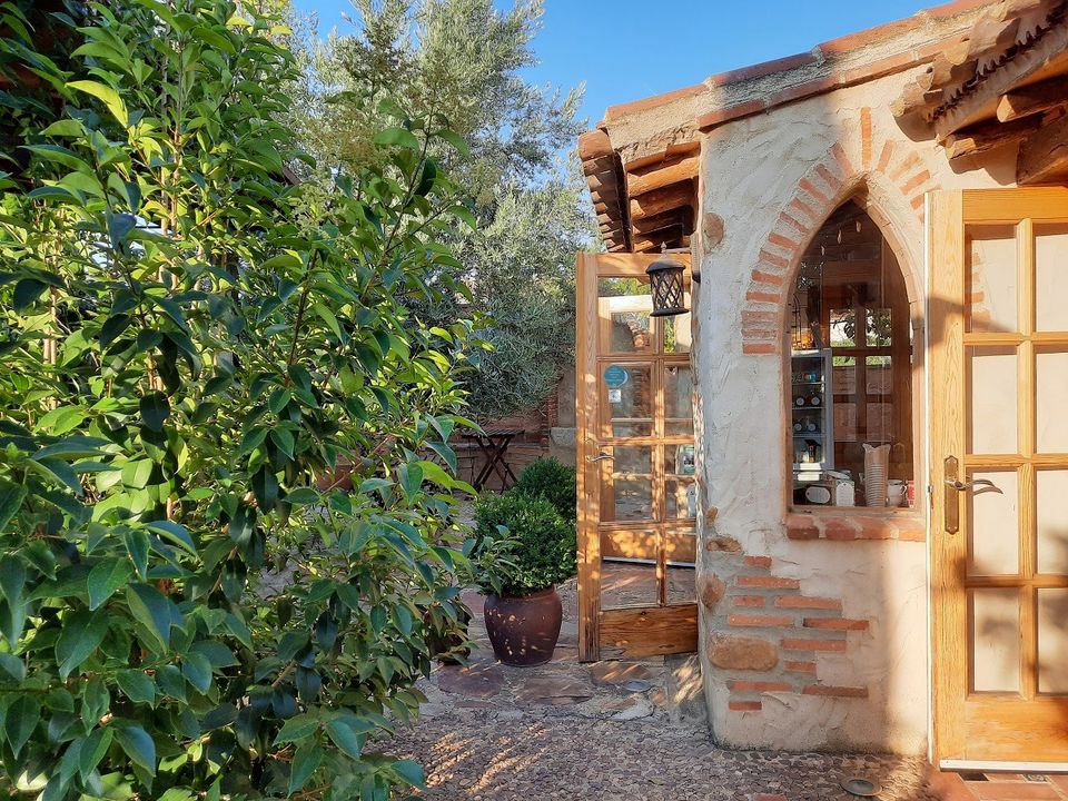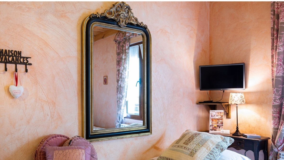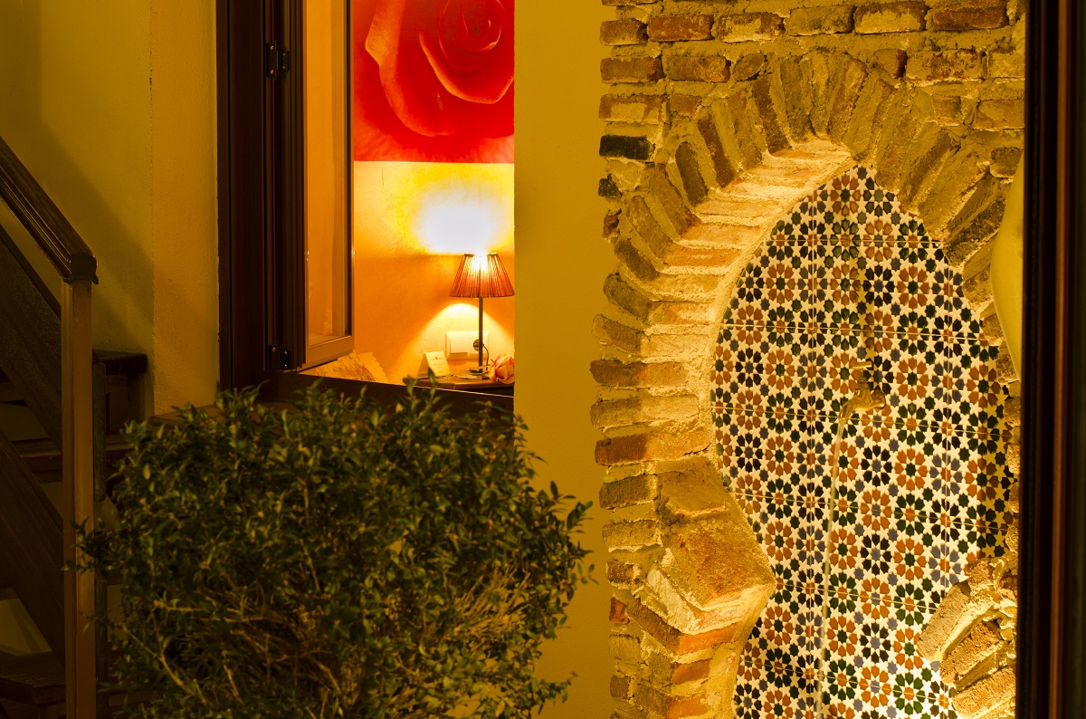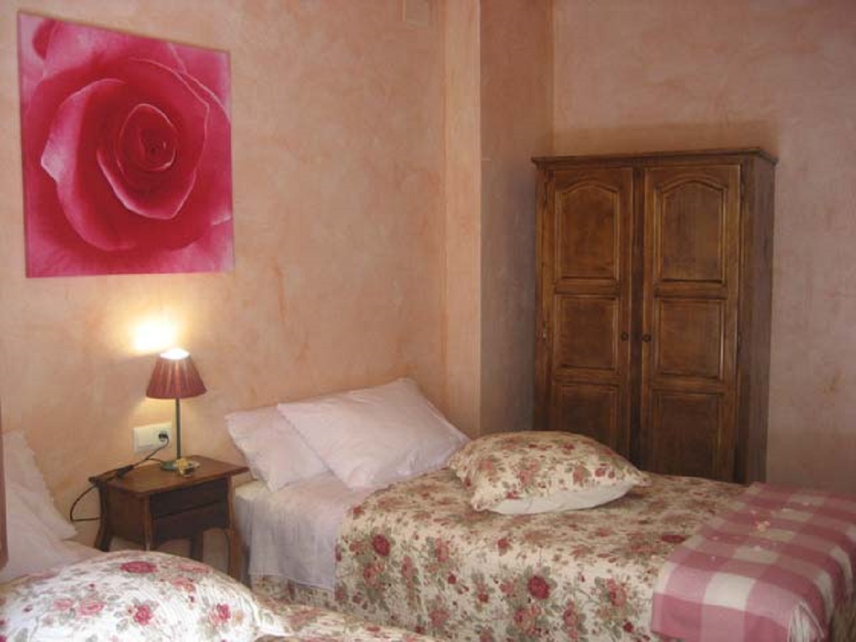 La habitación rosa da al patio interior con fuentes y plantas que conecta la planta baja con el desván. El silencio nocturno está garantizado.