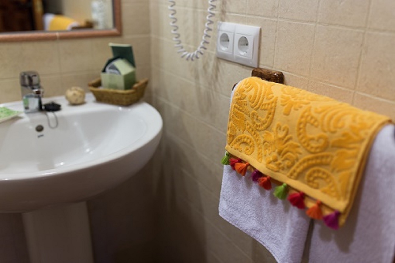 Tiene televisión, mesita de noche, mesa alta rectangular auxiliar, sillón y armario. Está decorada con un estilo provenzal y colores alegres. Se limpia con productos ecológicos.
